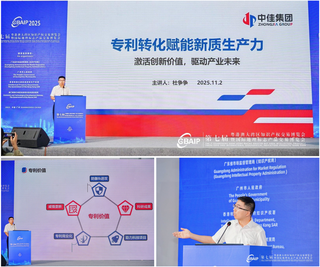 2025年10月31日-11月2日,第七届粤港澳大湾区知识产权交易博览会暨国际地理标志产品交易博览会(以下简称“第七届知交会暨地博会”)在广州盛大举行。中佳知识产权服务集团(简称“中佳集团”)作为积极参与者,以展台展示与路演分享的双重形式,在这场知识产权盛宴中首次亮相。