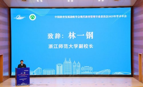浙江师范大学党委委员、副校长林一钢在开幕式上致辞,对远道而来的各位专家表示热烈欢迎。他表示本届年会聚焦教育强国目标下的教育管理理论创新与实践路径,旨在通过深入研讨,为构建中国特色、世界水平的教育治理体系提供学术支撑,推动数智赋能、教师发展、资源配置等关键领域的突破性探索,以高质量教育研究服务教育强国建设。