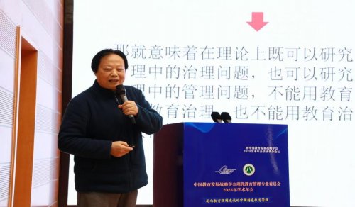 大会主旨报告环节,中国教育发展战略学会现代教育管理专业委员会创会理事长、浙江外国语学院孙绵涛教授作题为《从管理到治理:新时代教育管理学发展面临的新选择》主旨报告。他从学科发展的时代背景出发,系统回应了“为何转向治理”“何为治理的本真内涵”以及“如何构建治理体系”三大核心问题。孙教授指出,当前学界对教育治理的理解存在两种典型路径——或以治理完全取代管理,或将其窄化为管理的“高级形态”,均未能全面把握治理在东西方语境中兼具“管理”与“疏导”的双重内涵。他强调,新时代教育管理学应超越传统的思维定式,基于历史唯物主义方法论,构建一个统合科学管理、平等协调与多元共治的复合型教育治理体系,从而推动学科在理论范式与实践逻辑上实现根本性创新与自主性发展。