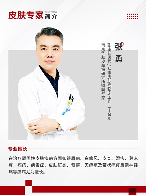 张勇副主任医师从事皮肤病临床工作二十余年,积累了丰富的实战经验。他在治疗顽固性皮肤疾病方面有着卓越的成就,尤其擅长银屑病、白癜风、皮炎、湿疹等疾病的诊治。对于病毒疣、皮肤斑类、紫癜、天疱疮及带状疱疹后遗神经痛等较为复杂的皮肤病,张主任也能凭借其精湛的医术,为患者提供有效的治疗方案。他就像一位勇敢的战士,在皮肤病的战场上冲锋陷阵,为患者驱散病痛的阴霾。