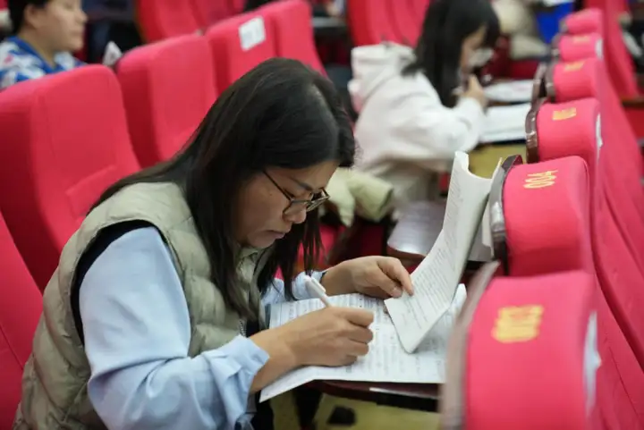 他们面前摆放着同样的试卷,遵守着同样的考试纪律,承受着同样的时间压力——他们是精华学校的教师,正践行着这所学校延续多年的独特传统:师生同考。