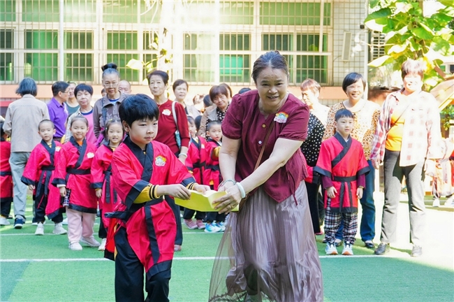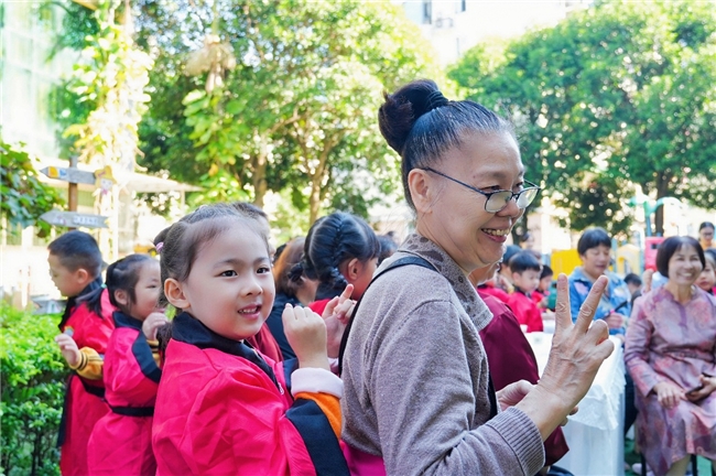 广州市增城区中新镇新星幼儿园的活动别出心裁,通过“隔代教育讲座”搭建祖孙沟通桥梁,孩子们录制“童心告白视频”,一句句“爷爷我爱你”“奶奶辛苦了”真挚动人,孩子们现场的表演更是精彩纷呈;重阳当日,一份份长寿面由小手捧至老人面前,敬意也融进了热气腾腾的烟火中。