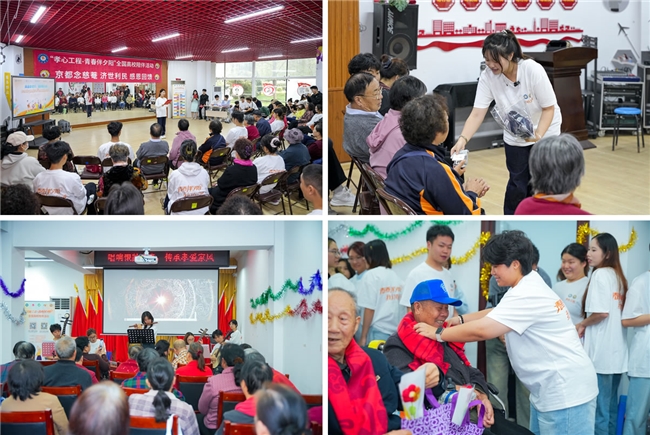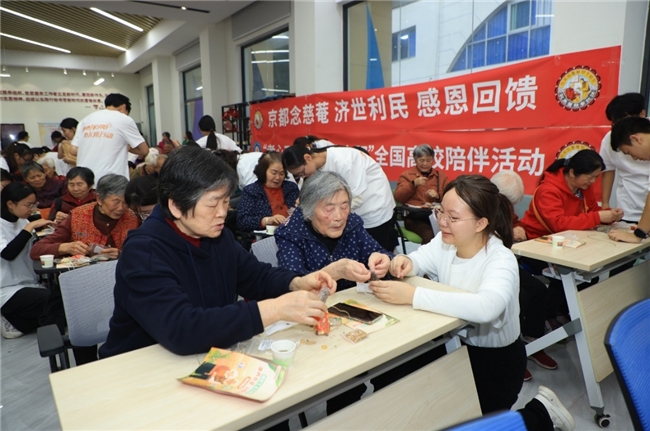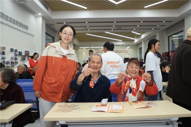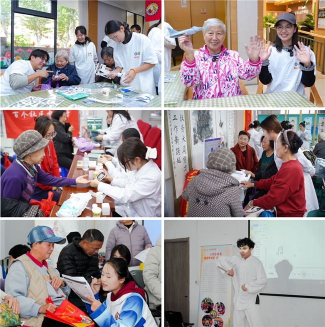 当课堂知识在服务长者中焕发新的光彩,青春与银龄也在互动中温暖彼此。南京航空航天大学的学生们发挥专业所长,带老人们动手制作航空模型,并在棋弈对局与笔墨书香间,丰富了长者的精神世界。长春中医药大学的志愿者们利用所学,为老人们耐心讲解中医知识,并贴心提供健康评估筛查等健康服务,将健康关怀融入每一次贴心互动。山东体育学院的志愿者为老人们带来刚柔并济的武术表演,并为他们进行体质测试,以实际行动诠释青春暖夕阳的深厚情谊。