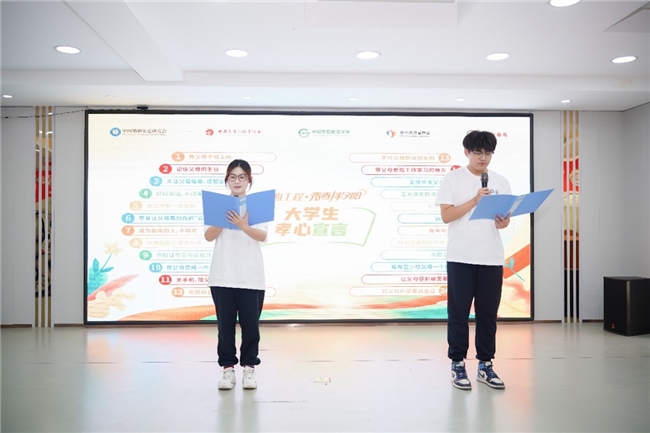 “青春伴夕阳”活动中,大学生志愿者们均以集体宣读《孝心宣言》的形式叩问初心,并以共跳“健康养肺操”的活力瞬间传递关怀。宣言声声入耳,是青春的告白,更是年轻一代对传统文化继承和发扬的真诚回应。