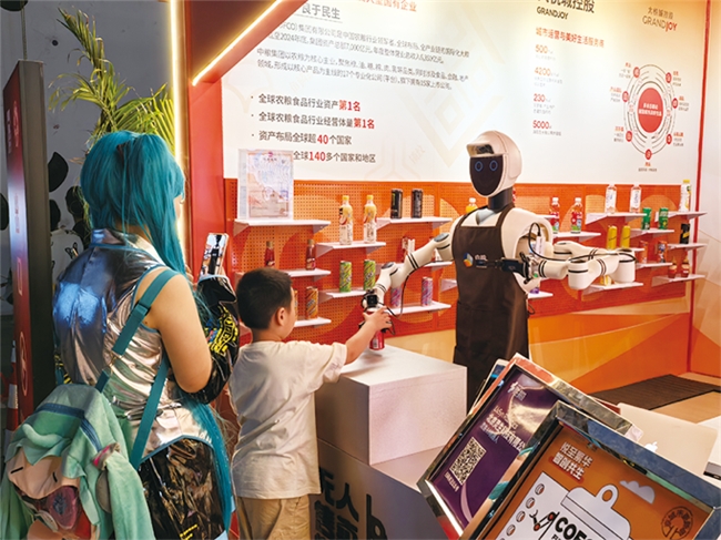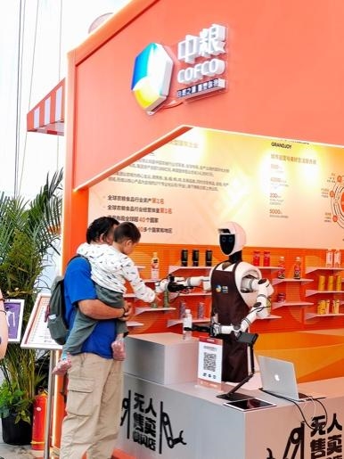 在「科」的维度,北京城市更新周中粮展台创新融合了AI及具身智能技术,让机器人担任「主理人」,以「无人售卖快闪店」的新兴业态实验,与市民同步探索未来城市生活,以科技之力为城市更新注入持久活力。