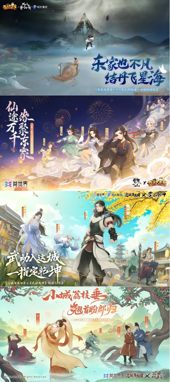 在文化传承方面,益世界通过《我是大东家》与故宫、非遗绸伞等传统文化IP的合作,《这城有良田》与陕西历史博物馆等文博机构的联动,探索游戏承载文化价值的新路径。同时,与《凡人修仙传》《画江湖之不良人》等国风IP的深度联动,进一步拓展了“游戏+文化”的创新实践。