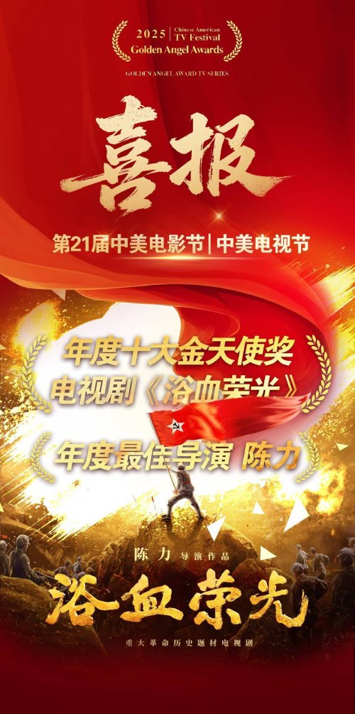 第21届中美电视节传来捷报——由香港新华集团下属新华中影联合出品重大革命历史题材电视剧《浴血荣光》荣膺“金天使奖”,导演陈力凭借其精湛的叙事功力与深沉的历史情怀,斩获“年度最佳导演”殊荣。这部作品以磅礴笔触勾勒革命征程,以敬畏之心还原历史本真,成就了一部思想精深、艺术精湛、制作精良的史诗之作。