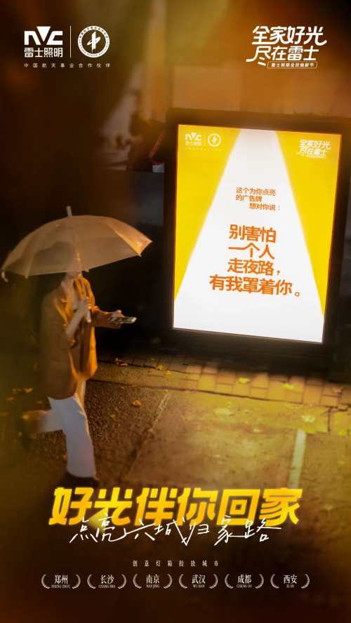 而在他们归途的必经之路,雷士照明的创意灯箱静静亮起。“好光伴你回家”,不只是一句简单的标语,更是一种温柔的提醒:在家的方向,始终有一盏灯为你点亮。