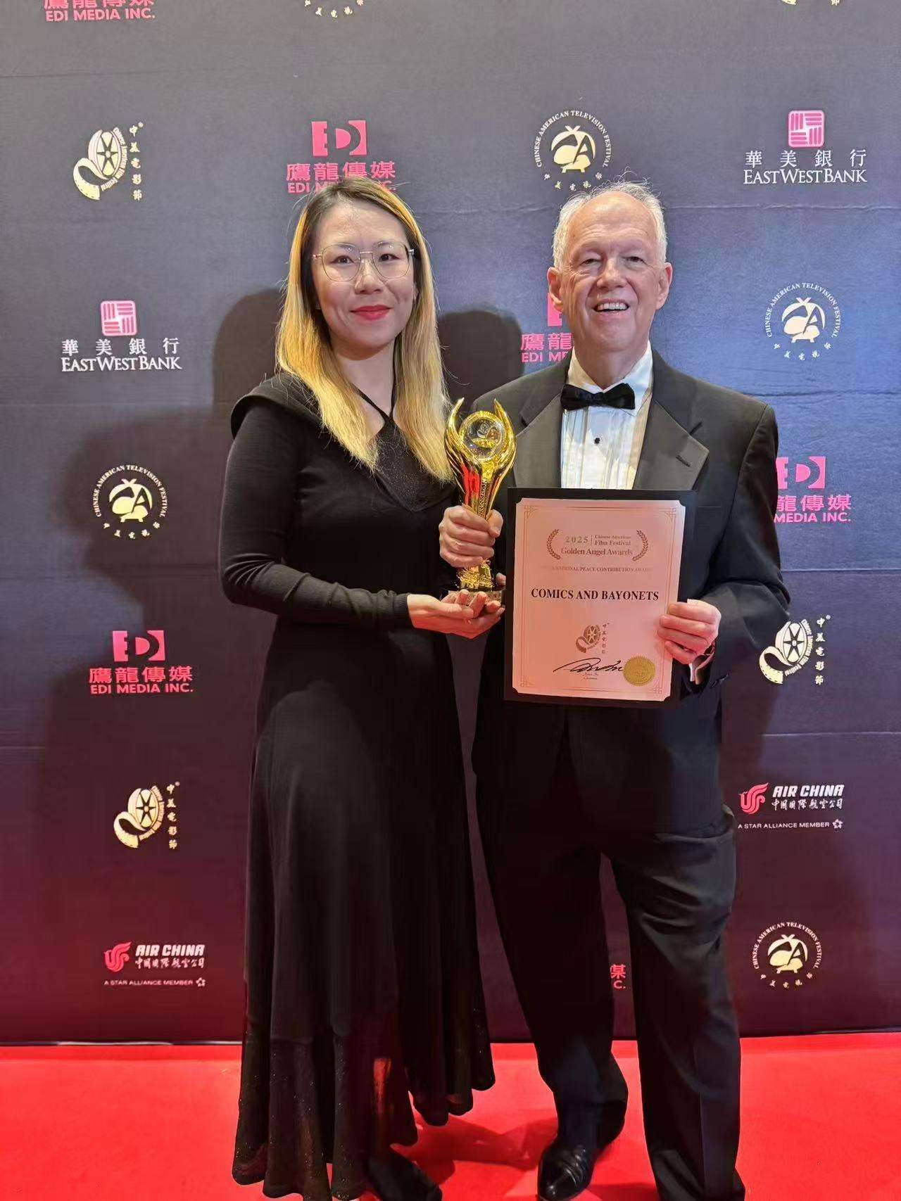 当地时间11月6日,第二十一届中美电影节在美国洛杉矶举行。由盛景映向与博纳影业等单位联合出品的纪录电影《漫画与刺刀》在此次电影节上首次亮相并斩获“国际和平贡献奖”,引发业内外广泛关注。影片由美国著名导演理查德·安德森与中国年轻导演王崑琳等联袂执导,历时十五载精心打磨,以其独特的视角和深厚的历史底蕴,为中国人民抗日战争暨世界反法西斯战争胜利80周年献上了一份意味深长的影像档案。
