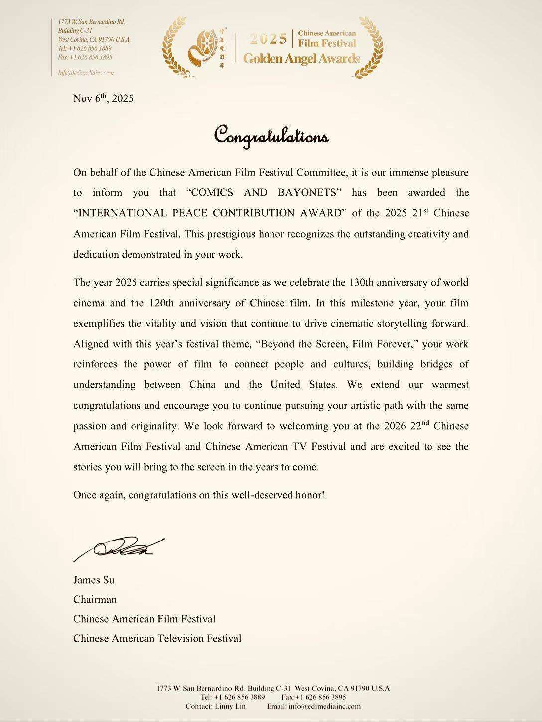 影片此次在中美电影节获奖,是其国际旅程的成功启航,也证明了其作为历史纪录片所具有的非凡艺术价值与现实意义。