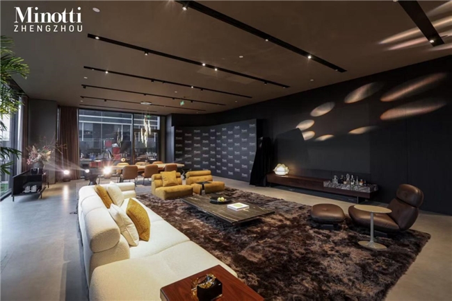 Minotti郑州店并非简单的家具陈列空间,而是一个占地950平方米的生活体验场所。通过开放式展示布局与艺术装置,它模拟真实生活场景,让来访者深入感受Minotti产品的舒适性与美学价值。