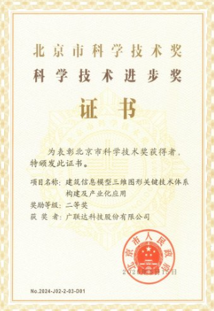 2025年11月7日,北京市科学技术奖励大会在京举行,会上“2024年度北京市科学技术奖”获奖名单正式揭晓。由广联达科技股份有限公司牵头完成的“建筑信息模型(BIM)三维图形关键技术体系构建及产业化应用”项目荣获北京市科学技术奖-科技进步二等奖。