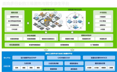 广联达三维图形技术是工业软件图形内核与工程建设行业三维数字化需求的交叉融合,是支撑BIM技术和建筑行业数字化转型的基础技术,能够全面支撑广联达算量系列软件、数维设计系列软件、施工BIM系列软件的研发,贯穿设计、施工、运维的工程项目全生命周期。