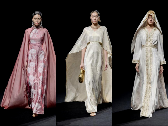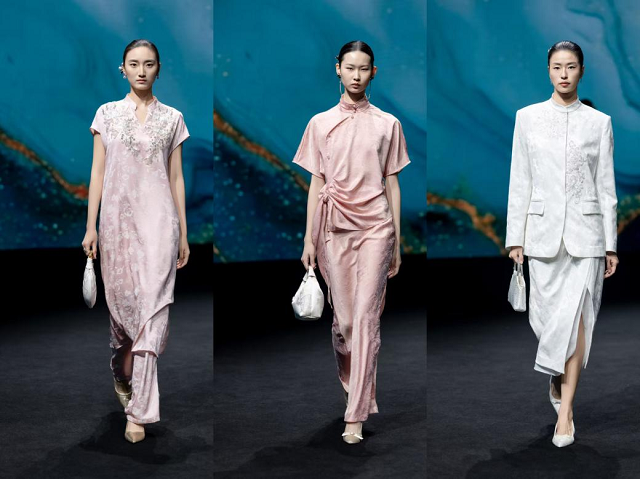“异域风情”:撷取中东元素,炽热玫粉与深邃靛蓝,通过提花工艺交织绽放,细节缀以手工鎏金刺绣,传递奢华,成就跨文化时尚语言。