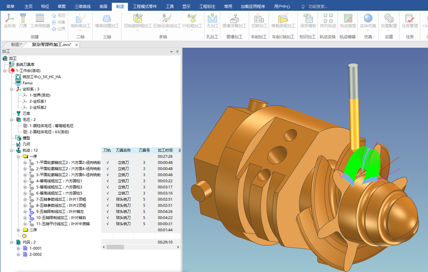 数控编程环节,CAXA CAM可完成零件加工过程规划,支持车、车削中心、车铣复合、数控铣、2-5轴加工中心、线切割等多种加工策略,并具备多级刀路生成策略、后置输出、机床仿真、干涉检查与加工时间精确计算等能力,为生产执行提供可靠参考。