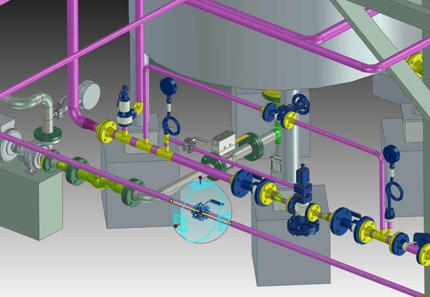 在建模设计环节,CAXA CAD具有丰富的3D图素库与“三维球”空间定位工具,实现快速搭建方案模型、参数化建模、钣金/钢结构/曲面/管道等专业设计需求,并支持动画渲染、机构仿真及模型PMI标注能力,进一步拓展企业3D设计能力边界。
