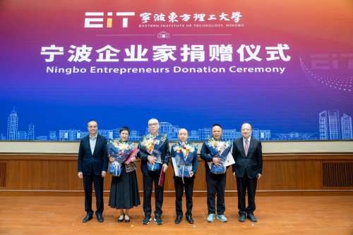 11月7日,宁波东方理工大学宁波企业家捐赠仪式在学校图书馆报告厅举行。宁波亚虎进出口有限公司总经理龚利红、宁波江山万里置业有限公司投资人徐春元、盛威国际控股(中国)有限公司董事局主席徐普南、申洲国际集团控股有限公司董事会执行主席马建荣四位宁波企业家,向宁波东方理工大学捐赠,所得款项将统筹用于学校的学科建设、人才培养、科研提升、教育教学等方面。