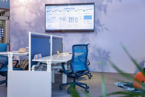 在圣奥展台的UP7数字工位区域,始终围满体验人群。“点击手控器,桌面能在70cm-127cm之间自由升降,坐站办公一键切换。”工作人员一边演示,一边介绍产品优势——这款数字工位打破传统久坐办公模式,精准契合当下职场人对办公健康的需求。不少参观者点赞其智能显示屏设计:“科技感十足,线条流畅有质感,细节处见匠心。”