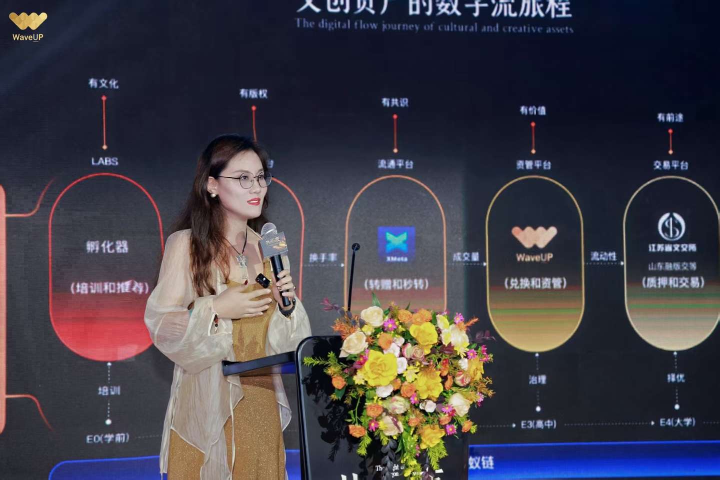 在活动现场,WaveUP 副总 扶摇 分享了《数字文化生态成长体系》,提出文化资产需从“铸造确权”走向“治理传承”,实现“让文化被看见,也能被延续”的价值循环。
