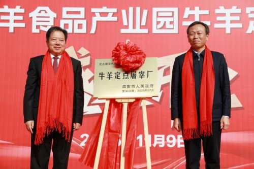 在与会嘉宾的共同见证下,陕西省相关领导与陕西美羚羊食品科技产业园有限公司董事长王宝印共同为美羚羊食品产业园牛羊定点屠宰厂揭牌,并为受聘专家颁发聘书。