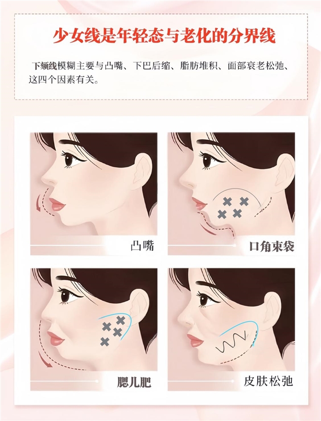 那条清晰紧致、流畅优美的面下1/3轮廓,被誉为“少女线”。它是青春、活力与饱满精神的视觉象征。尤其侧面显示,无论是镜头前的自信微笑,还是日常生活中的一颦一笑,一条清晰流畅的“少女线”都是年轻女性极力追求并渴望定格的美学标志。它的存在,直接决定了面容的年轻态与精致感。