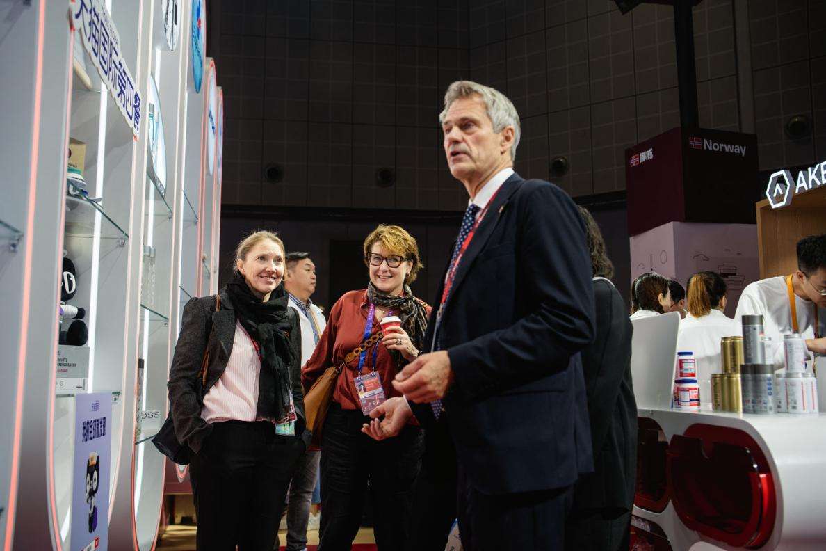 本次挪威国家馆由挪威创新署主办,得到挪威驻华大使馆与挪威驻上海总领事馆全力支持,以“纯净、科学、可持续”为核心宗旨,集中展示挪威在海洋生物科技、功能营养等领域的顶尖发展成果。开幕仪式上,挪威驻华大使戴伟恩阁下在致辞中强调,进博会作为全球贸易与合作的重要平台,为中挪两国企业搭建了高效的交流桥梁;挪威农业与食品部国务秘书汉娜-贝里特·布瑞克女士则聚焦健康产业合作,表达了对中挪双方深化领域内交流共赢的殷切期待,希望通过本次展会让更多中国消费者感受挪威自然与科学融合的营养魅力。