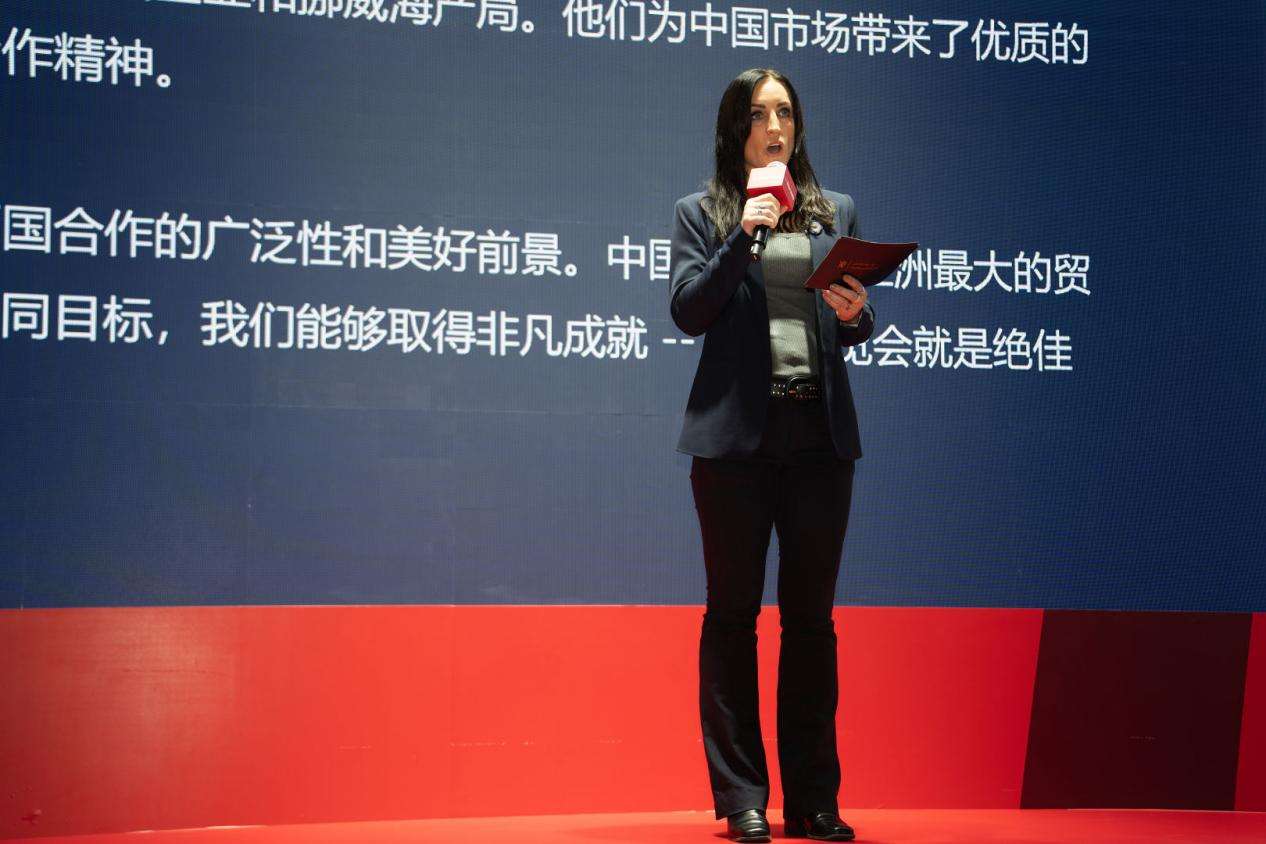 挪威农业与食品部国务秘书汉娜-贝里特·布瑞克女士上台发表致辞