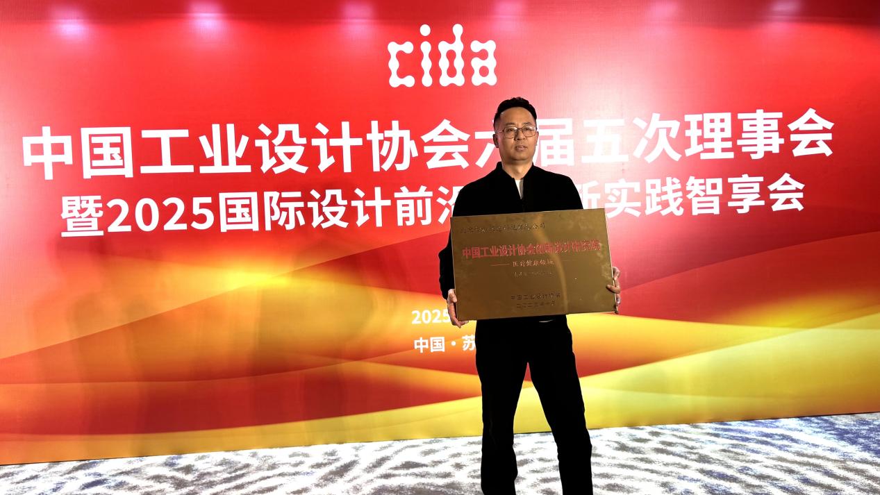 图摄于中国工业设计协会六届五次理事会颁奖现场,智加设计首席设计官赵东阁领奖。