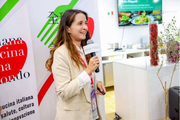 意大利对外贸易委员会上海代表处副代表俞客(Ms. Velia Filippelli)女士在分享中表示,意大利对外贸易委员会在中国设有四个办事处,长期致力于推动意大利美食文化的传播与推广。俞客女士进一步介绍,ITA通过多渠道推广正宗意大利食品,不仅与意大利国际厨艺学院爱兰马Alma合作开展烹饪教育项目,还与本来生活平台建立长期合作关系。她强调,通过线上线下同步发声及在中国社交媒体上的持续宣传,ITA不断扩大意大利美食的影响力,为更多消费者了解、体验意大利风味提供了便利与机会。