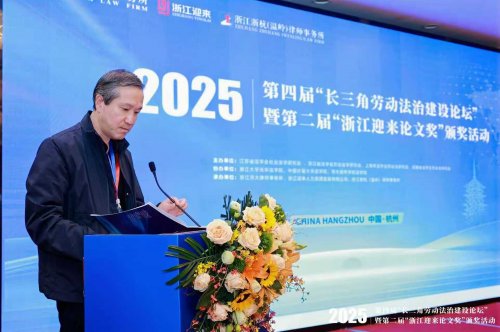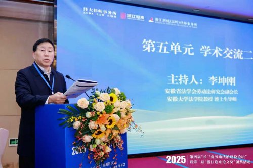 随后,浙江省政府咨询委委员、省政府咨询委社会(军民融合)发展部部长,浙江省法学会副会长刘树枝致辞。刘树枝指出,长三角地区是我国经济发展前沿,劳动法治协同关乎千万劳动者权益、劳动关系和谐与营商环境优化。他结合调研数据指出,浙江省现有280万新就业形态劳动者,主要包括外卖骑手、网约车司机等,这类人面临职业风险高、社会保障不足等现实困境。必须加强长三角区域劳动法治协同,推动制度创新,切实保障新就业形态劳动者的合法权益。为此,他提出四点建议:一要紧扣长三角一体化战略,将新业态治理、跨区域权益保障等纳入研究主线;二要深化协同联动,落实常态化协作机制,推动长三角劳动法治一体化建设;三要聚焦平台用工定性、算法合规、灵活就业社保衔接等难点痛点,强化研究成果转化;四要加强中青年人才培养,为劳动法治建设注入持续活力。他呼吁各方凝聚智慧,共同为构建中国特色和谐劳动关系提供坚实法治保障。