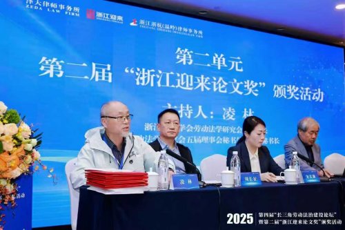 作为活动的核心环节之一,第二届“浙江迎来论文奖”暨长三角中青年劳动法学研究优秀论文颁奖活动于上午10时15分举行。本环节由浙江省法学会劳动法学研究会名誉会长、劳动法学研究会五届理事会秘书处常务副秘书长凌林主持。