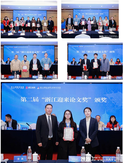 在隆重的颁奖仪式中,获奖代表依次上台领奖,会场气氛热烈,充分展现了长三角地区中青年劳动法学者的研究活力与学术潜力。