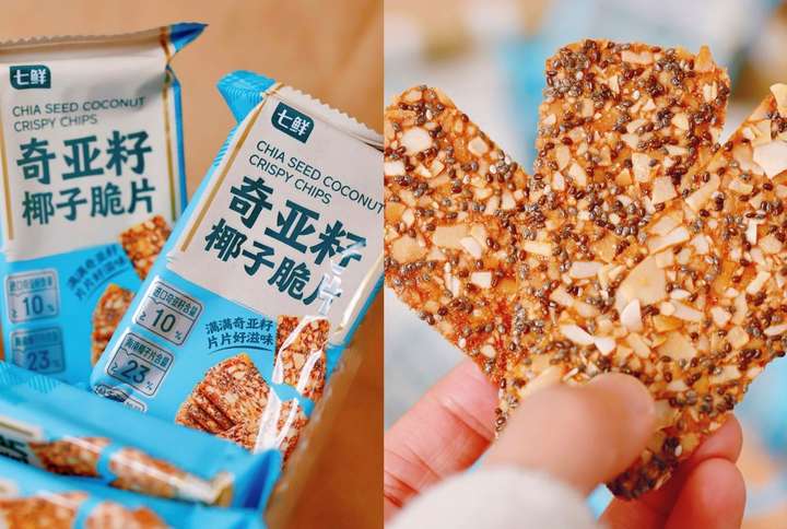 本次品牌日,七鲜进一步带来多款行业首推、配料干净、兼具美味与创意的零食新品。如健康与口感兼备的代表作七鲜奇亚籽椰子脆片:奇亚籽与椰子片总含量超三分之一,带来丰富颗粒感与层次咀嚼体验;不仅实现每100克含11克膳食纤维、总糖低至1.5g、0反式脂肪酸的健康指标,更以蛋液替代水的工艺创新与低温烘焙技术,最大程度保留营养与风味,成为控糖与轻断食人群的理想选择。