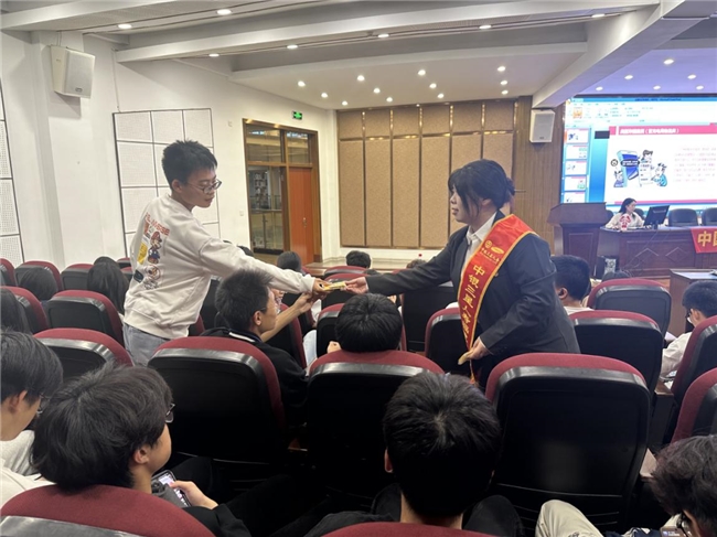 讲座结束后的消保趣味问答环节点燃现场氛围。工作人员围绕信用卡安全、支付风险识别、金融消费者权益等知识点设计题库,通过抢答、必答等形式,让学子在轻松竞技中巩固所学。“收到‘注销校园贷’电话该怎么办?”“正规平台交易与私下交易的区别是什么?” 一道道贴近校园生活的问题引发热烈讨论,答对者获得的定制金融知识文创礼品,更让参与热情持续高涨,实现“寓教于乐”的宣传效果。
