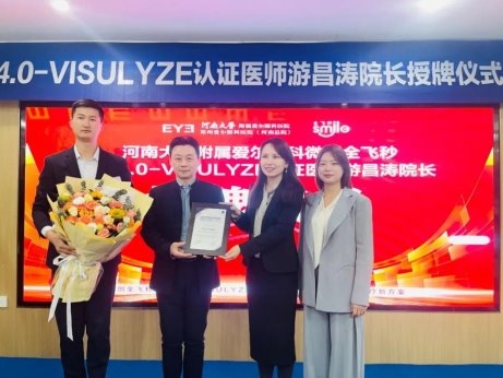 在开展该技术一年多的时间里,临床应用成绩斐然。作为全国首批升级微创全飞秒精准4.0-VISULYZE技术的专业眼科医院,河南大学附属爱尔眼科医院荣获“蔡司微创全飞秒精准4.0-VISULYZE临床合作单位”“蔡司微创全飞秒精准4.0-VISULYZE科普示范基地”,游昌涛院长荣获“蔡司微创全飞秒精准4.0-VISULYZE手术医师全球认证”,标志着河南大学附属爱尔眼科医院在微创全飞秒精准4.0-VISULYZE临床技术应用上获得高度认可,推动河南地区全飞秒激光近视矫正迈入4.0时代!