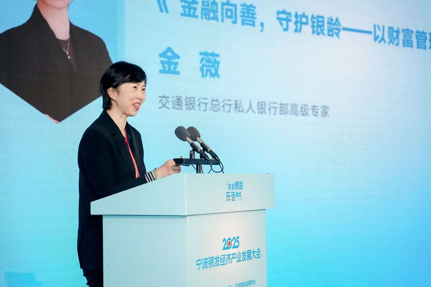 在同期举办的“甬抱银龄·财赋未来”主题论坛上,交通银行总行私人银行部高级专家金薇进行了以“金融向善 守护银龄”为主题的分享,重点介绍了交行养老金融的创新路径与实践成果。她指出,交行聚焦客户养老配置、传承与服务等核心需求,通过稳健资产配置、多元传承工具及完善服务生态,构建全生命周期养老金融新范式,引发与会嘉宾共鸣。
