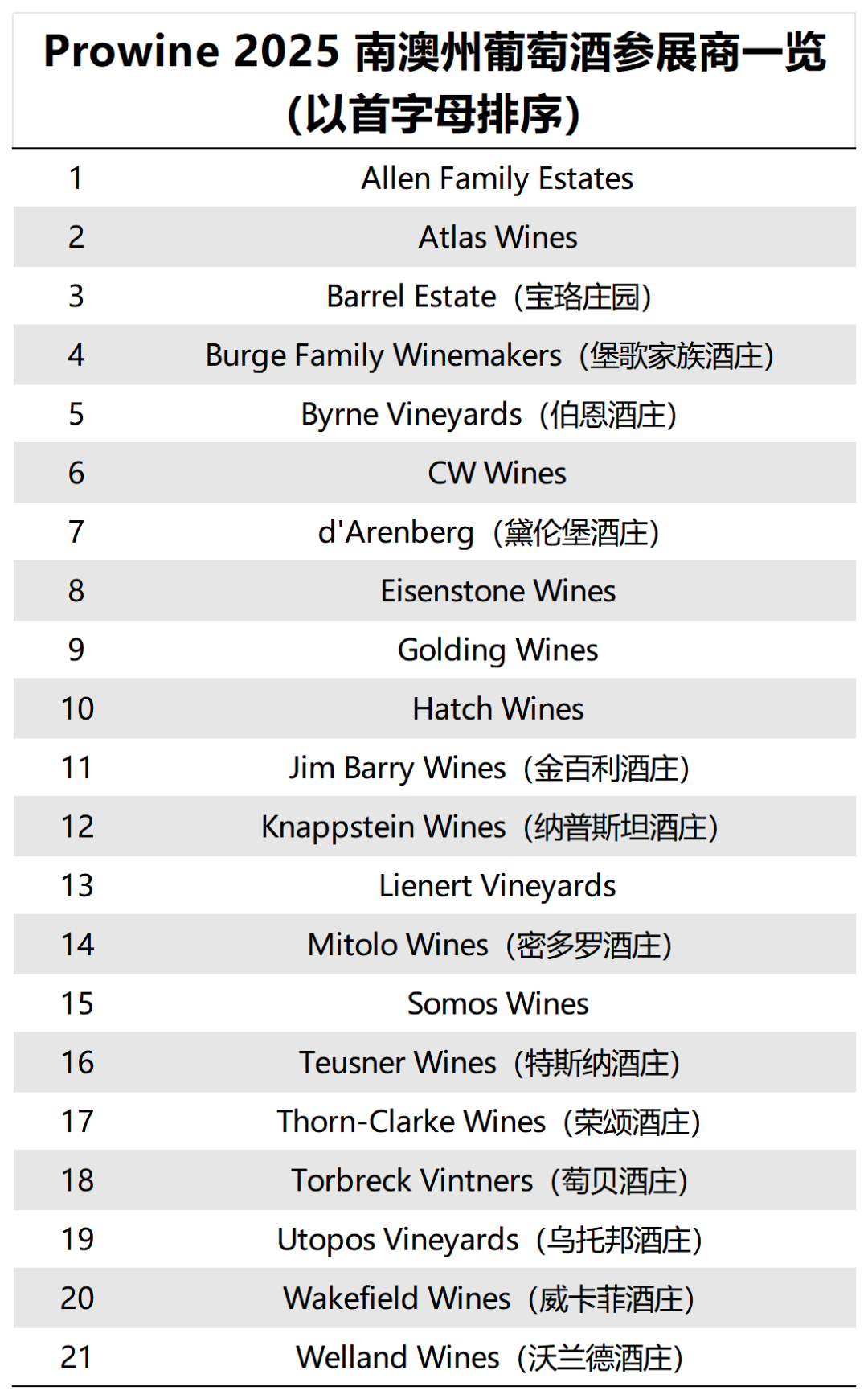 近期,第八届中国国际进口博览会(CIIE)与 ProWine Shanghai 2025 国际葡萄酒与烈酒贸易展览会相继在上海圆满落幕。作为澳大利亚葡萄酒的核心产区,南澳州酒庄在两大行业盛会密集亮相,以丰富的产品矩阵、沉浸式体验与深度商务对接,收获了超高人气与丰硕成果,展现了南澳葡萄酒的独特风土魅力,更传递出持续深耕中国市场的长远信心。