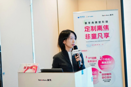 阚秋霞总监指出,角膜塑形镜品牌越来越多,但市场需求永远是有卖点的技术,简单好配的产品,良好的视力和控轴效果,以及优质的服务。童享的TFT专利泪膜设计总结了以往的验配经验,简单易上手。离焦点和离焦量的定制,为验配者提供了简单易懂的可调参数,为近视管理提供个性化的调整方案和优秀的控制效果。而最新推出的可视化验配软件提供了更大的调整空间和更直观的调整反馈。