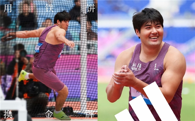 新疆选手阿卜杜艾尼·图尔贡在男子铁饼决赛中以64米40的成绩强势夺冠。
