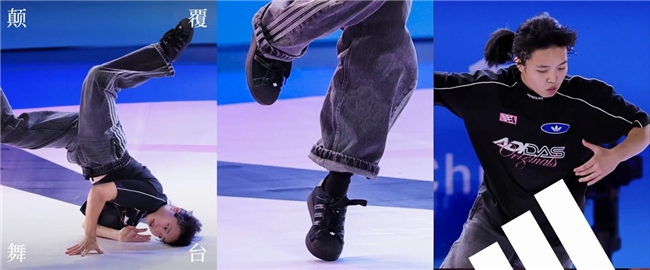 霹雳舞女子组决赛中,巴黎奥运会铜牌得主、阿迪达斯签约运动员刘清漪凭借自信从容的表现和高难度动作成功卫冕。