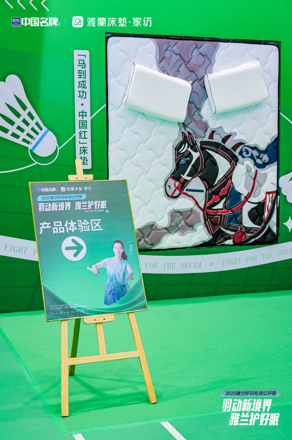 赛场之外,雅兰打造的产品体验区同样人气高涨,主打产品「马到成功·中国红」床垫成为焦点,吸引众多选手与观众驻足体验。