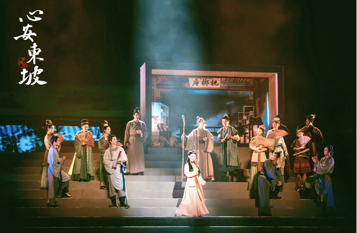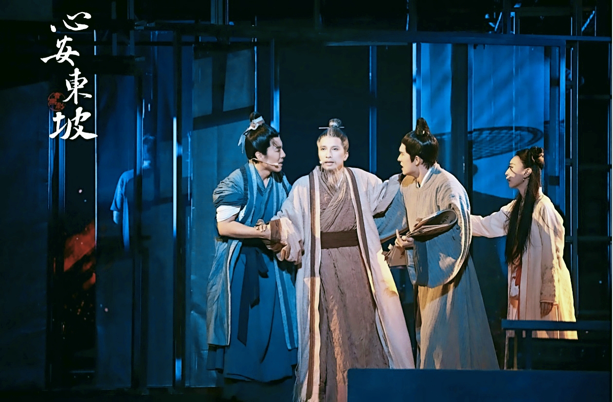 “此心安处是吾乡”,这句出自苏轼《定风波·南海归赠王定国侍人寓娘》的词句,成为大型音乐剧《心安东坡》全剧的精神锚点。《心安东坡》巧妙地将“心安”作为叙事的主线,贯穿苏轼一生的贬谪流离。从黄州的“东坡居士”到惠州的“日啖荔枝三百颗”,再到儋州的“天涯海角”,整个剧作不以悲情渲染苦难,而以豁达展现其“随缘自适”的生命哲学。这种主题设定极具现代意义:在焦虑与漂泊成为时代症候的当下,苏东坡先生的“心安”不再是被动的忍耐,而是一种主动的精神建构。整个剧作通过音乐与戏剧的完美融合,将中国古典文人的“穷则独善其身”升华为一种超越境遇的生命智慧,实现了中国古典文学与现代戏剧的相互转译。