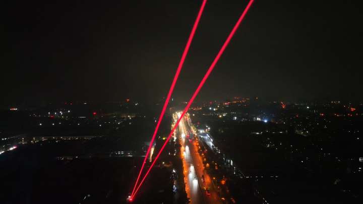 从应用场景来看,产品广泛适配大型庆典、城市地标亮化、文旅夜游、主题公园、户外音乐节等多元需求:在文旅项目中,高饱和色彩能强化夜间沉浸氛围;在地标亮化中,10 公里可视距离可让建筑光影成为城市夜景核心符号;在大型庆典场景中,如本次深圳全运会闭幕式现场,其动态光束矩阵串联陆域看台、水域舞台与城市背景,成为“城市全景闭幕式”的视觉点睛之笔,充分展现光影创意的表现力。