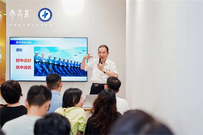 2025年7月,参灵草全国首家航天主题店在温州启幕,中国航天基金会嘉宾现场授牌,并邀请航天员大队首任大队长申行运带来了一场丰富的航天知识讲座,揭秘中国航天员在太空期间的生活日常、中医药与航天的特别情缘。这是参灵草品牌文化与航天精神深度融合的实体象征,让大众能近距离了解航天事业、感受航天精神。