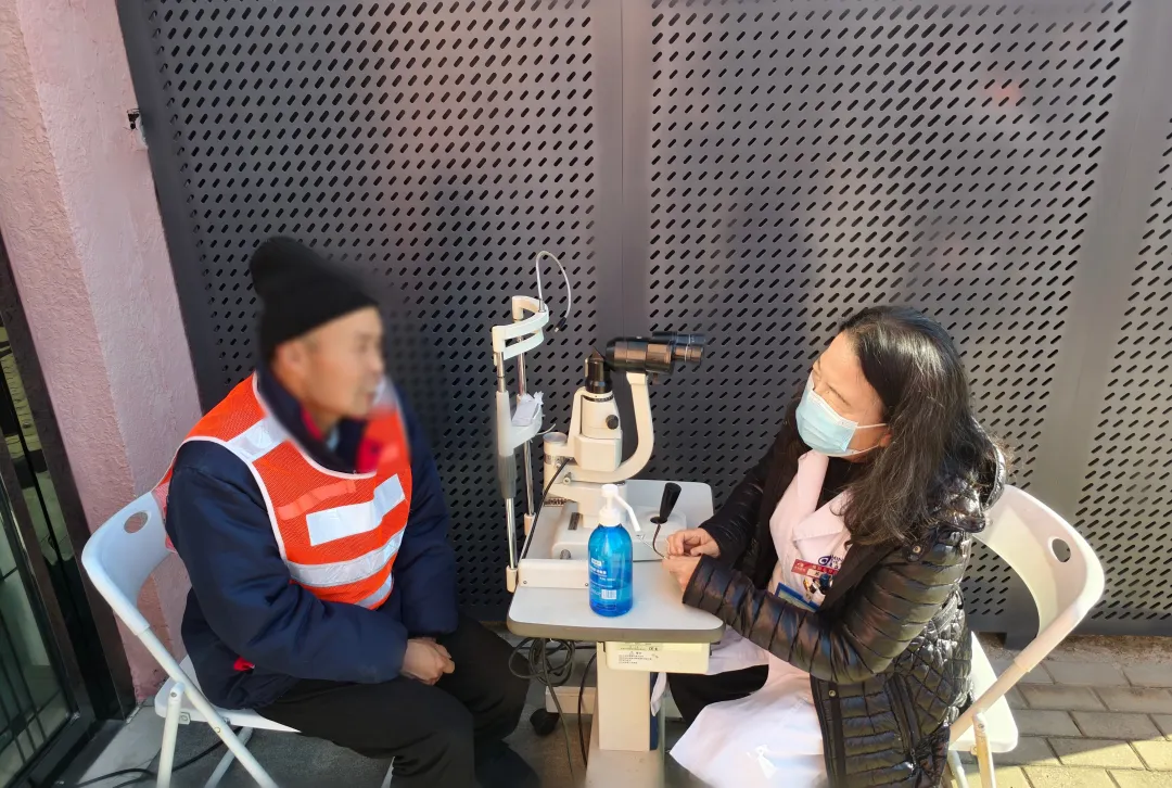 苏金萍院长带领护士平玉香为现场有需求的百姓提供视力检查、裂隙灯检查、健康问诊、咨询解答及眼健康护理指导等多项服务。