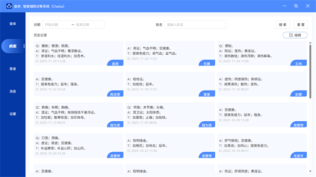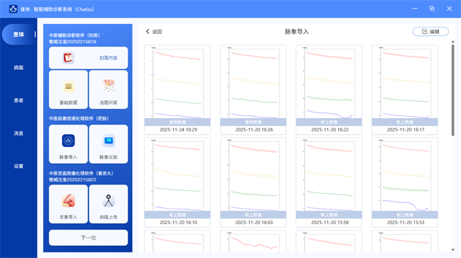 在数据采集层面,软件设计了结构化与非结构化数据双轨处理机制:对于姓名、性别、主诉、既往病史等结构化信息,采用标准化术语录入确保数据规范性;对于舌象、脉象等非结构化信息,则支持导入知医邦舌象仪拍摄的舌面图像、知医邦脉象仪采集的腕脉波谱。