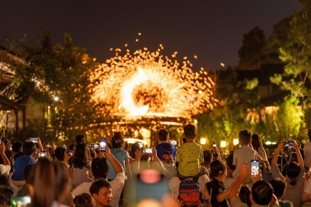 古镇体验更以“动静结合”为特色,营造出张弛有度的度假节奏。“濮院织秋”主题活动通过“遇见宋潮、秋日收藏、织造艺术、疗愈生活”四大单元,打造出丰富立体的体验矩阵:日间可漫步古镇街巷,在颂钵音疗、宋式点茶中静心养性;夜晚则融入“濮院梦华录”超长夜秀,在数十场不间断演绎与近百名NPC构筑的宋韵场景中,体验“我在宋朝躺赢的一天”。这种从静谧疗愈到沉浸互动的自如切换,让游客在动静平衡中真正深入古镇肌理,感受跨越古今的时尚生活方式。