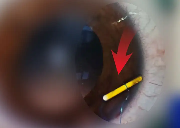 而整个手术中最具战略意义的一步,也是难度比较大的一部,将一枚米粒大小的氟轻松缓释剂固定,以更好发挥药效。