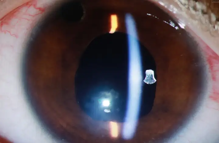 一是葡萄膜炎形成了“并发性白内障”,本应透明的晶状体变得混浊;二是炎症导致虹膜后粘连,紧紧地贴在了晶状体前表面,三是手术后要控制炎症的发展。