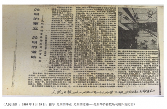 特区初创时,香港鲜奶供应紧张,光明华侨畜牧场临危受命,将供港牛奶从经济任务升华为改革机遇。农场人们在荒凉的土地上建起一座座牧场,从新西兰引进良种奶牛,用瑞典鱼骨式挤奶机实现效率飞跃,短短数年便占据香港七成以上鲜奶市场。那些年,清晨的冷链车送去的一瓶瓶新鲜牛奶,成功为两岸架起来了信任的桥梁。1984年的《人民日报》上,也清晰记录着香港商人罗有礼与光明华侨畜牧场的鲜奶再续约五年的订单。便是对这份品质最直接的认可。